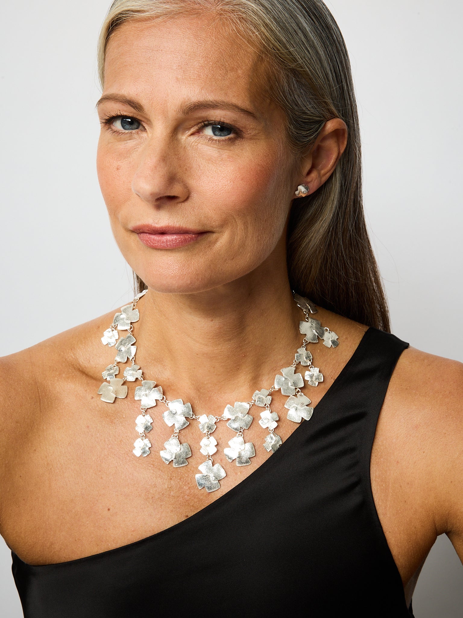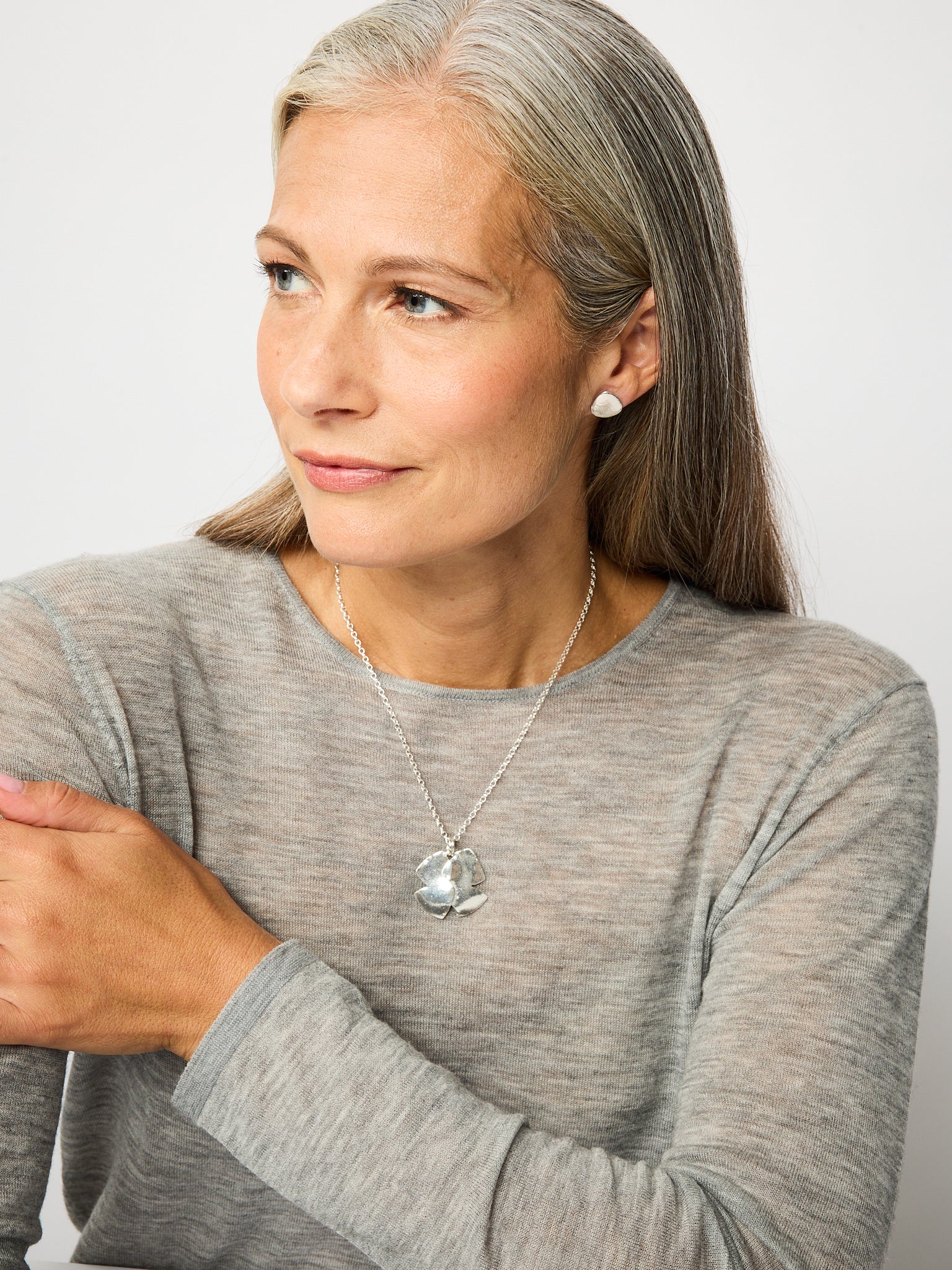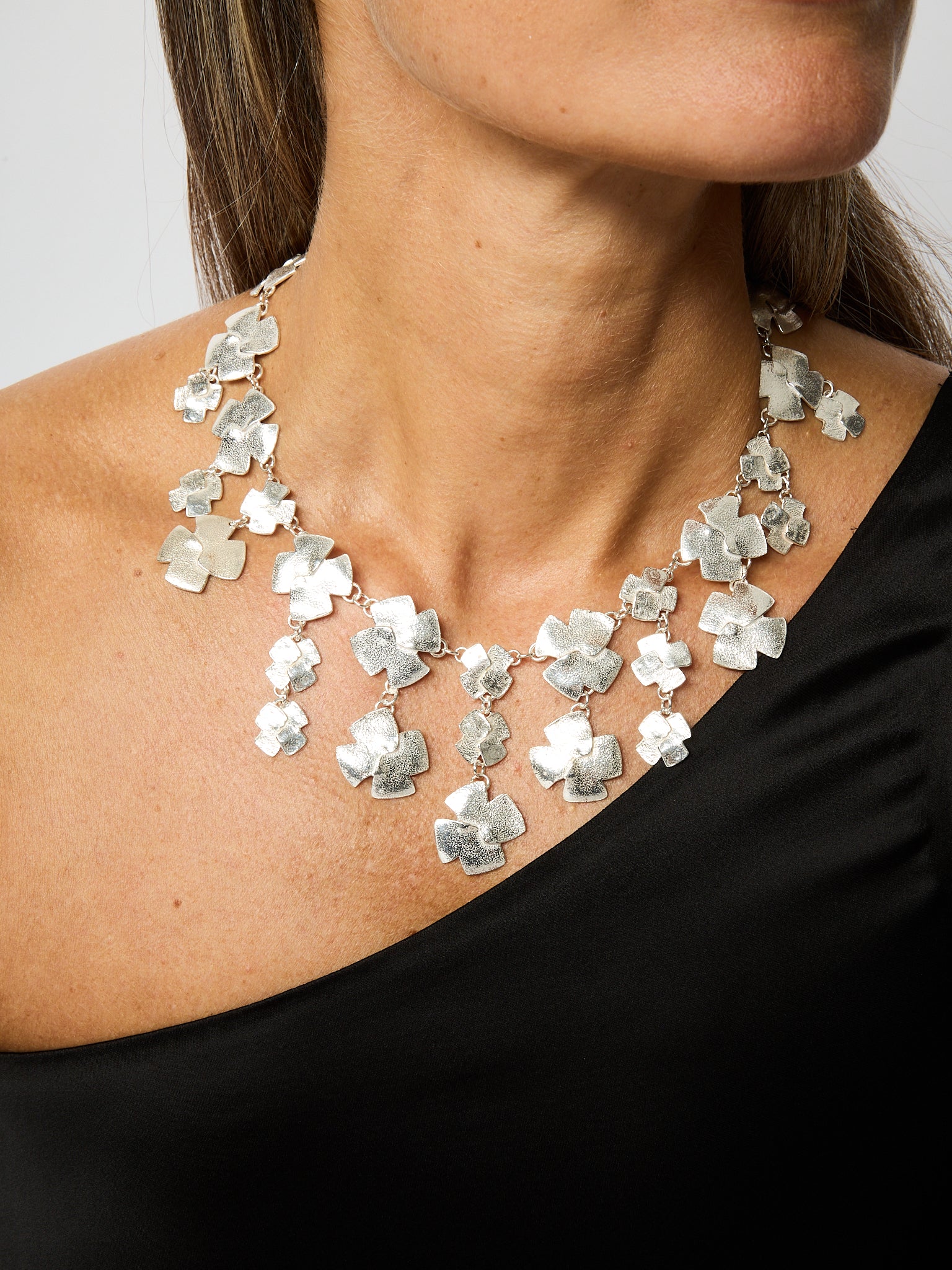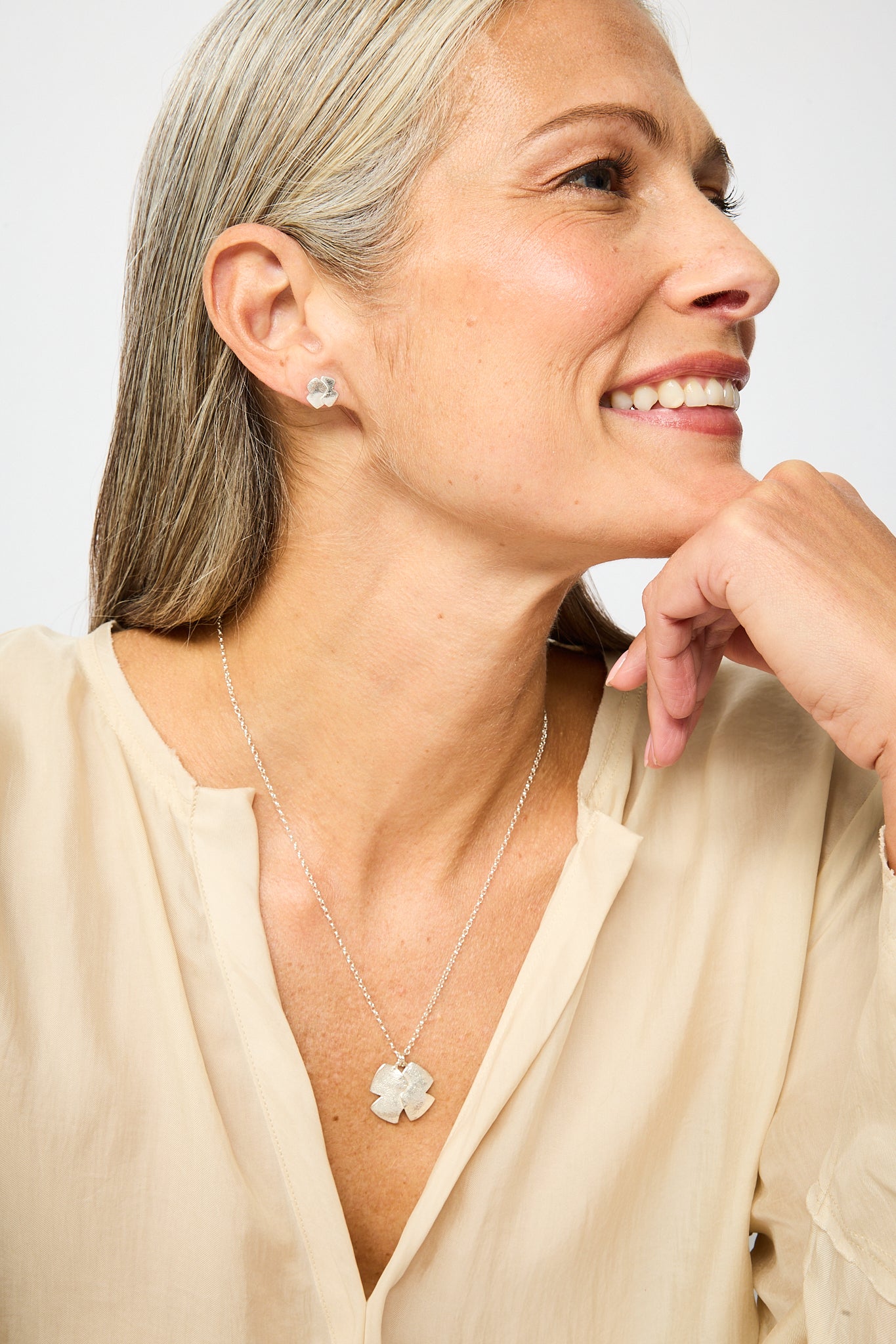 is a range of pared-down, rough-hewn shapes in Sterling Silver or 18ct Gold, with a smooth, yet earthy quality to their texture.