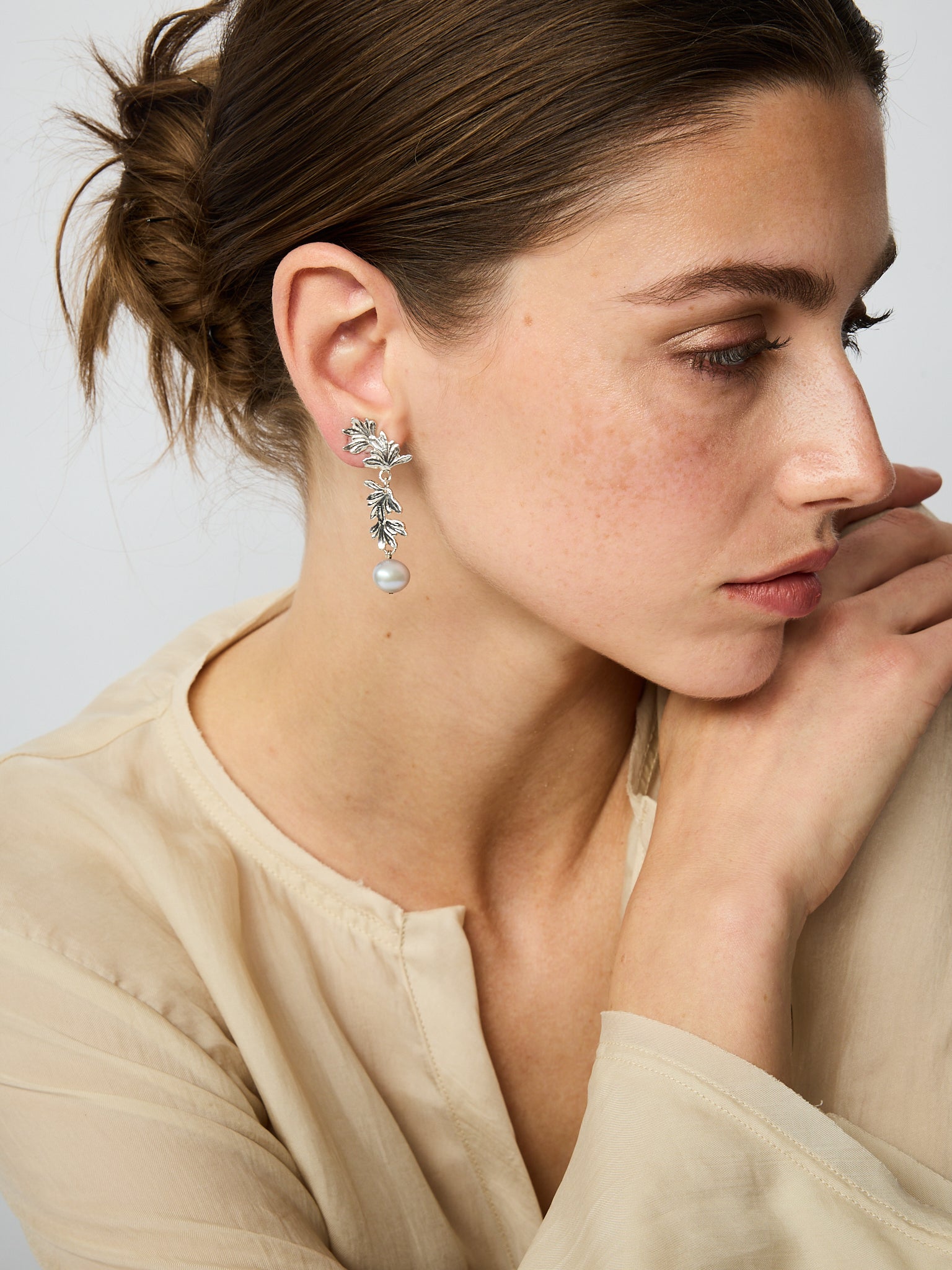 LA TRAVIATA Double Leaf Curl earrings with Pearl Drop