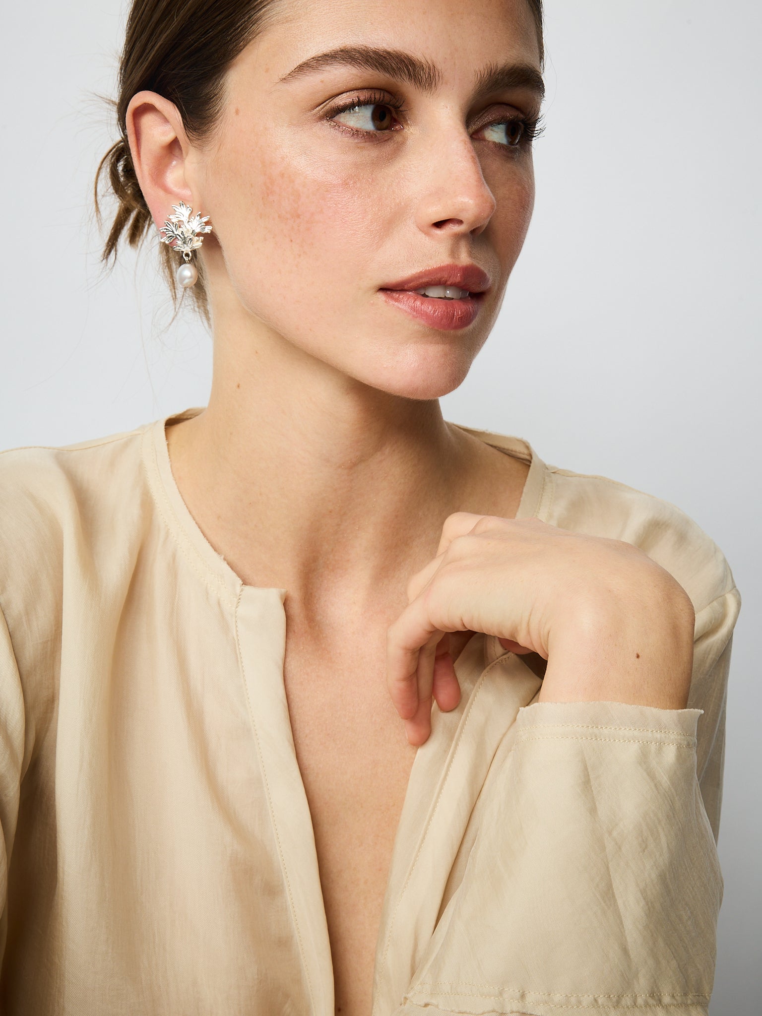 LA TRAVIATA Square Leaf earrings with Pearl Drop